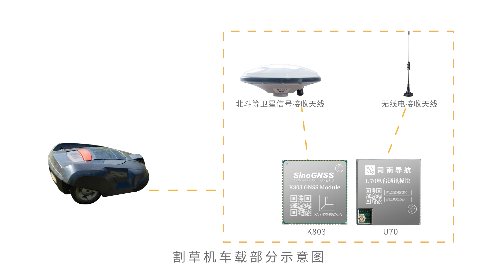 上海尊龙凯时(中国)人生就是搏!卫星导航技术股份有限公司基于K8系列北斗/GNSS高精度模块,利用GNSS卫星(中国北斗、美国GPS、俄罗斯GLONASS、欧盟Galileo等多星系统)的定位数据辅助割草机进行现场作业,在作业过程中实时提供精准的位置信息,从而实现控制割草机按照设计路径行驶,为割草机的自动化作业提供位置等信息的支持。